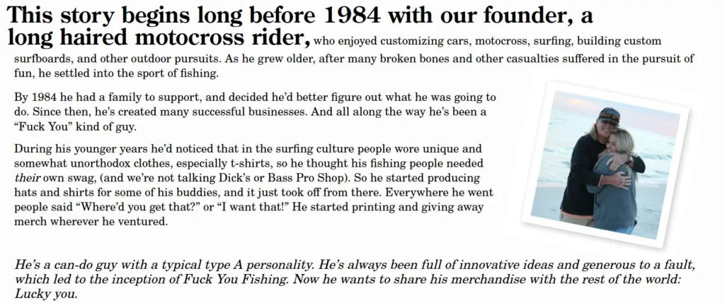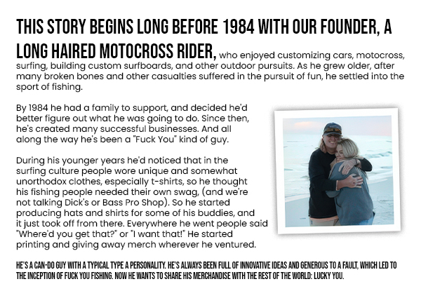 “Perfect gear for fishing, riding, or drinking (or all the above.) My three favorite past times.”
